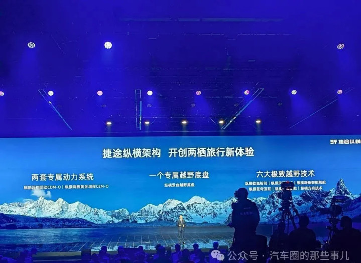 捷途纵横拥有鲲鹏超能混动CDM-O和纵横两栖黄金增程CEM-O,并将配备全地形纵横云台越野底盘,六大越野技术。