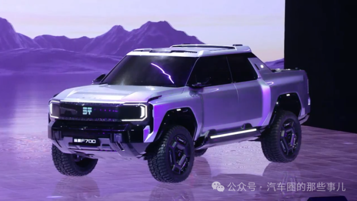 纵横F700采用鲲鹏超能混动CDM-O,拥有智能全地形模式,四座布局,3.5T牵引。新车定位一款越野皮卡,采用了比较方正的车头设计,配备熏黑进气中网,中网上方拥有贯穿式的LED灯带,两侧配备C字形的LED日间行车灯,展现出野性风格的同时也不失科技属性。
