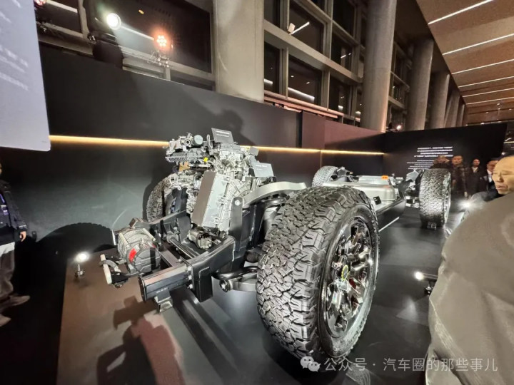 底盘方面,新车采用非承载式车身,并将搭载混动系统,配备2.0T纵置混动专用发动机,系统总功率为560kW,总扭矩为795牛·米,传动系统匹配最新一代混动变速箱,官方表示其满油满电续航将达到1400km。